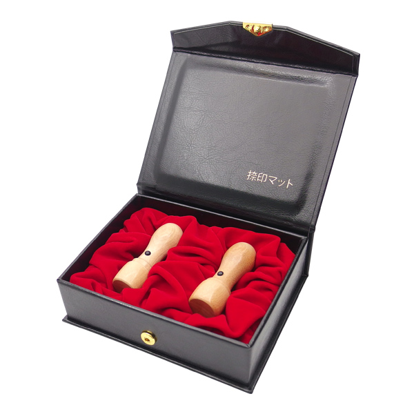 起業・開業・会社設立に欠かせない銀行印・実印の2本に「専用ケース(捺印マット機能付)」がセットになっています。