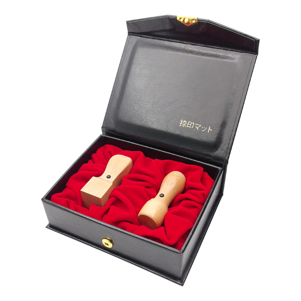 起業・開業・会社設立に欠かせない実印・角印の2本に「専用ケース(捺印マット機能付)」がセットになっています。