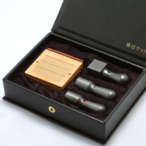法人4点Cセット[IPチタン マットブラック] [天丸、天丸、角印](16.5、18、21mm)ゴム印 4段