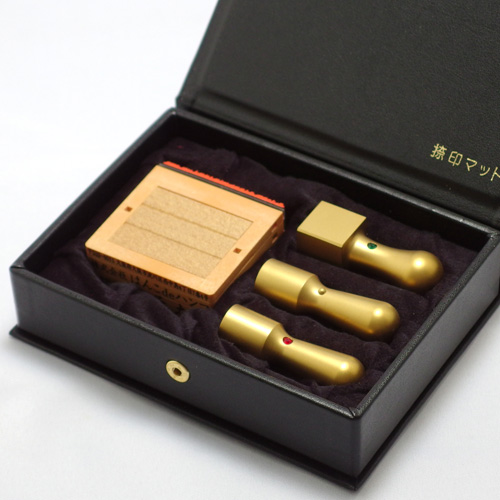 法人4点Cセット[IPチタン マットゴールド] [天丸、天丸、角印](16.5、18、21mm)ゴム印 4段