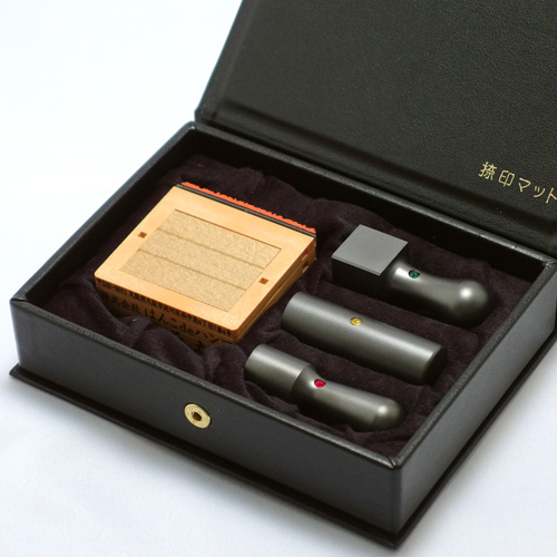 従来のチタンにアメリカの宇宙開発技術として発明された「イオンプレーティング」を施したIPチタン印鑑シリーズ。表面を少しざらつかせる「ブラスト加工」と「IPブラック加工」を組み合わせることにより、ツヤ消しならではの重厚感溢れる仕上がりとなっています。