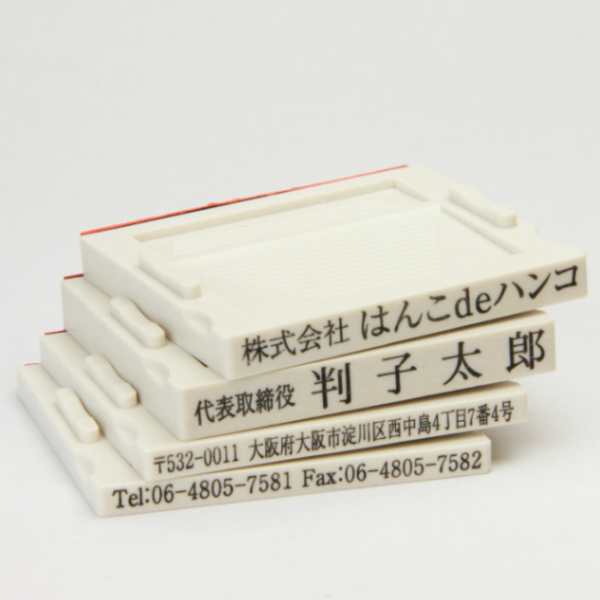 ゴム印(親子判)は文字を正面から見て、上部が凸となっております。