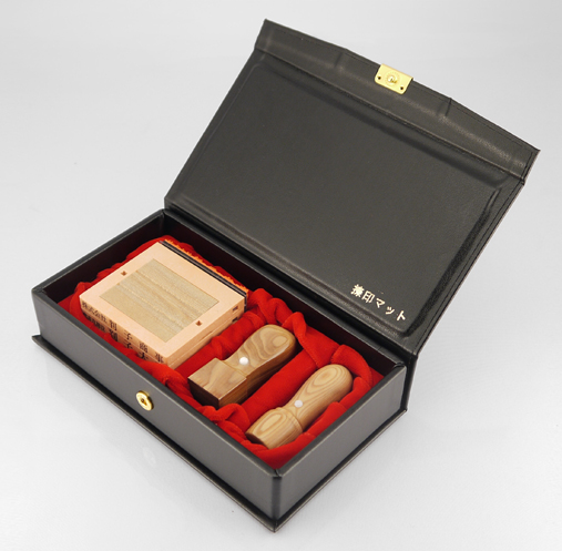 柔らかく密度差の大きい杉材を、高圧水蒸気を用いた圧密化加工をすることで、比重を高め、印面の堅さや高い均質性を実現しています。天然素材を100%活かし、木目の美しさと自然の風合いはもちろん、ほのかな杉の趣きある香りが癒しを与えてくれます。
