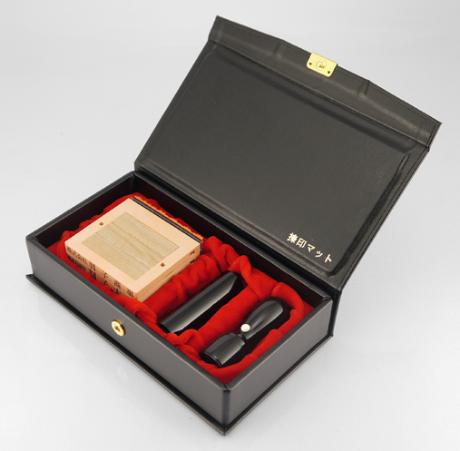 起業・開業・会社設立に欠かせない実印・銀行印の2本と、開業後に必要となる住所印(分割式ゴム印)がセットになっています。「専用ケース(捺印マット機能付)」がセットになっています。