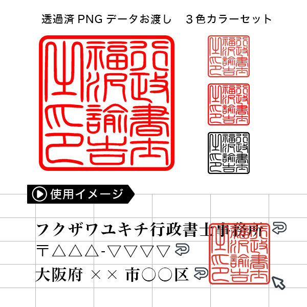 透過PNG画像、実寸21mm・朱・赤・黒3色セットの電子印鑑です。日常的な書類作成時デジタル印としてお使いいただけます。