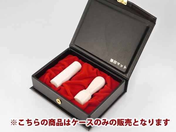 レザー調のボディーでフタの部分が捺印マットになっています。寸胴、天丸、角印のどの組合せでも2本同時に収納することができ、契約時などの持ち運びに大変便利な印鑑セット用のケースです。