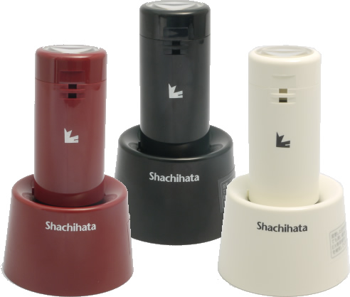 日付と名前、メッセージを一度になつ印。 ひとおしで日付と名前、メッセージがなつ印できるデーターネームシリーズ。 使用目的に合わせて形状やサイズも多彩に揃ってあらゆるビジネスシーンをスムーズにサポートします。 こちらはスタンドタイプになっています。