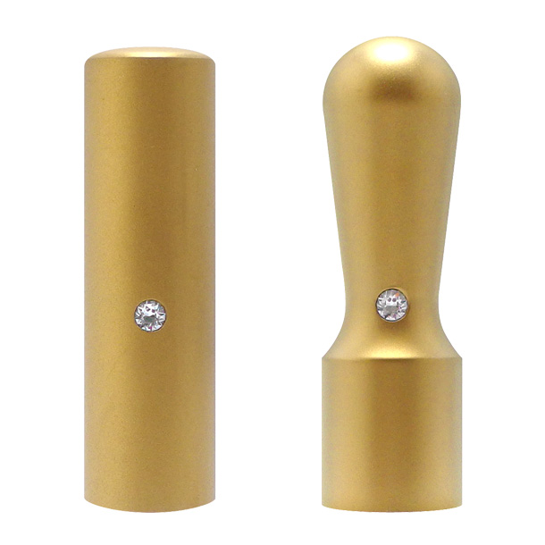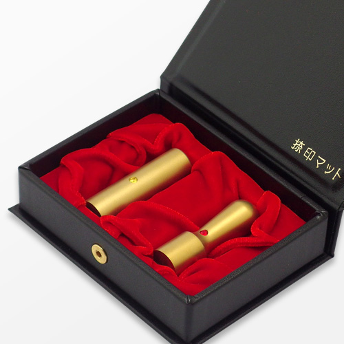 従来のチタンにアメリカの宇宙開発技術として発明された「イオンプレーティング」を施したIPチタン印鑑シリーズ。表面を少しざらつかせる「ブラスト加工」と「IPゴールド加工」を組み合わせることにより、ツヤ消しならではの重厚感溢れる仕上がりとなっています。