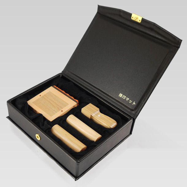 会社設立に欠かせない実印・銀行印・角印の3本と、開業後に必要となる住所印(分割式ゴム印)がセットになった会社印鑑セットです。※「専用ケース(捺印マット機能付)」付き