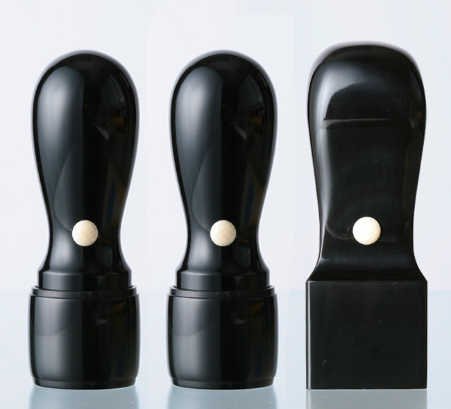 定番の黒水牛印鑑です。耐久性や朱肉のなじみが良く、高級感あふれる質感にコストパフォーマンスを併せ持つ素材です。「はんこdeハンコ」では、最高級とされる芯持ち(角の中心の芯部分から取った最も歪みにくい部分)のみをご提供しております。