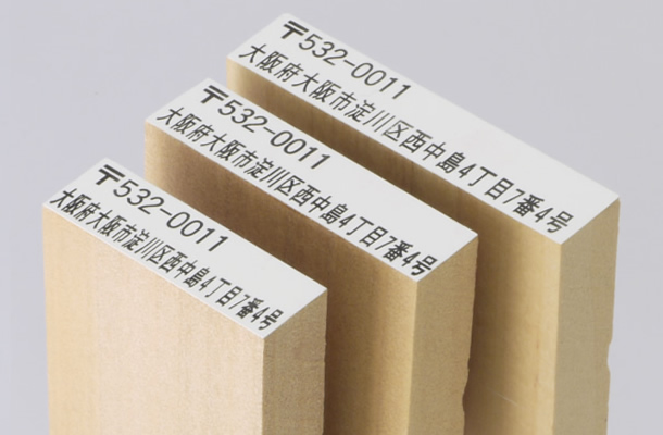 一行印に収まりきらない文章や長い住所等にご利用いただくサイズです。住所と社名だけの小さな住所印や【取り扱い注意】等の大型の注意書きにもご利用いただけます。