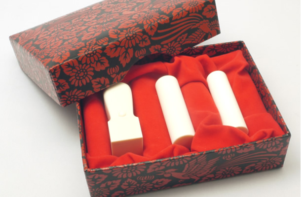 伝統的な京都の友禅和紙で作られた、上品且つ華やかな会社印鑑用ケースです。鎌倉特産の彫刻漆器にあやかった鎌倉彫調の柄がとても艶やかで印鑑3本を収納できます。
